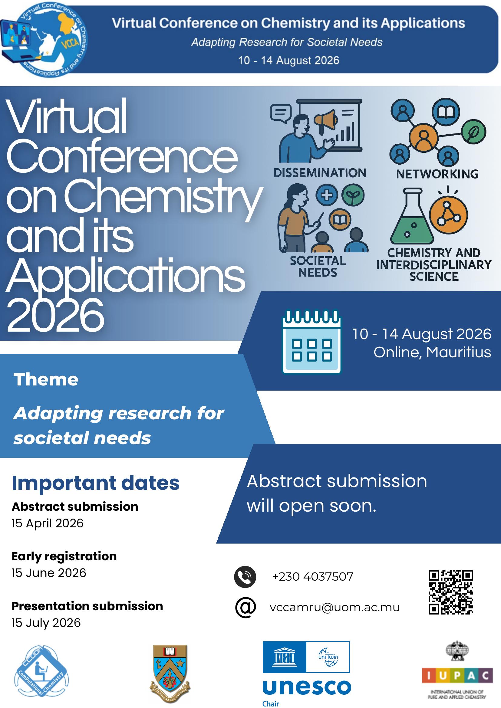 The Virtual Conference on Chemistry and its Applications (VCCA-2026) will be held from August 10–14, 2026.