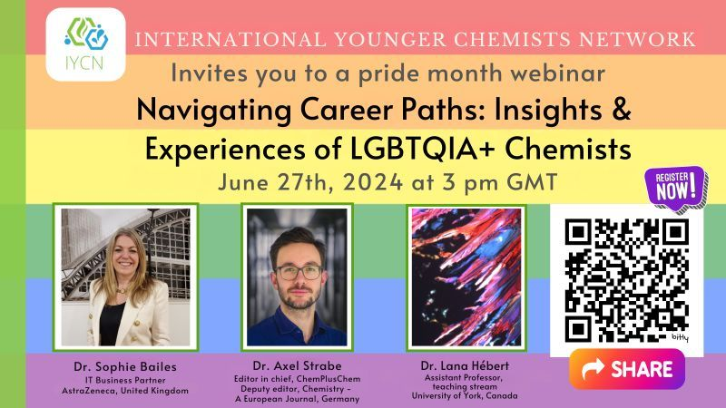 🌈 Join the International Younger Chemists Network (IYCN) for a Pride Month webinar 🌟 'Navigating Career Paths: Insights & Experiences of LGBTQIA+ Chemists' on June 27th, 2024 at 3 pm GMT.
