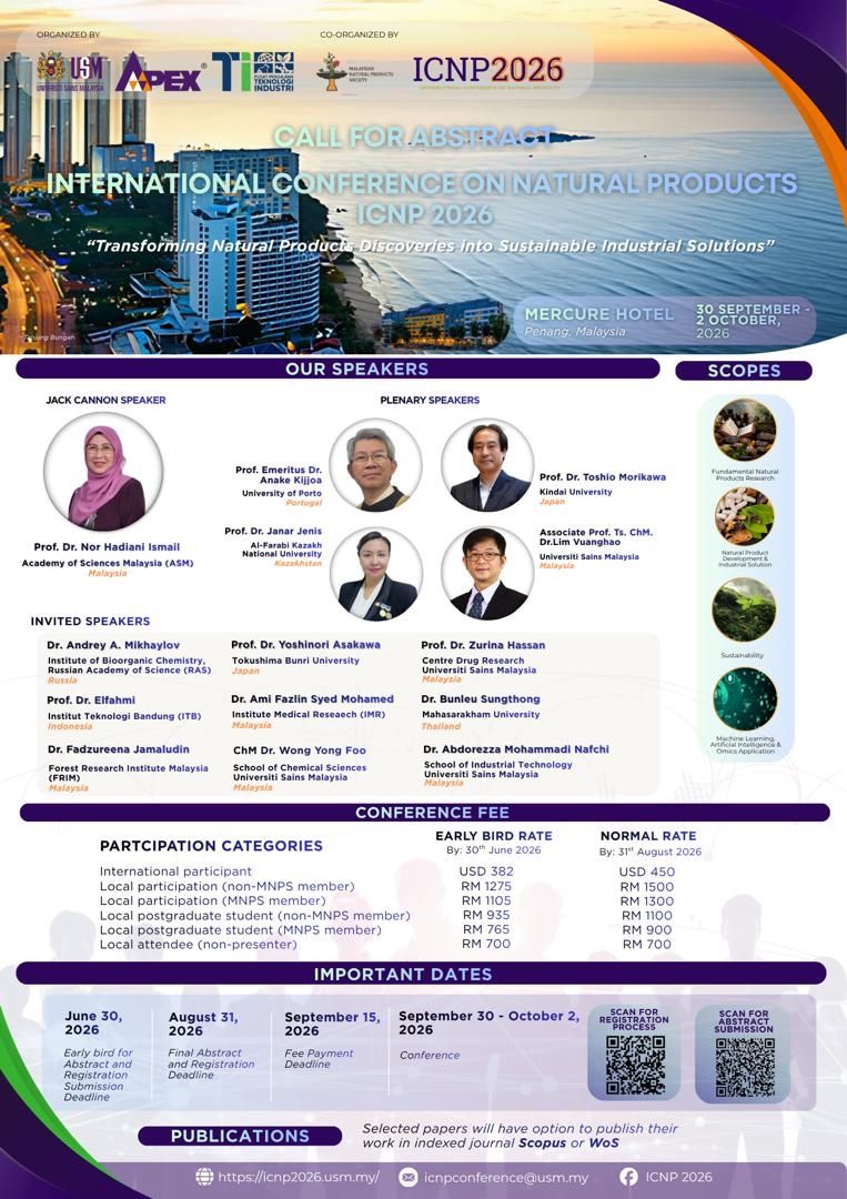 📌 Participation For registration and abstract submission, please visit: 🌐 https://icnp2026.usm.my